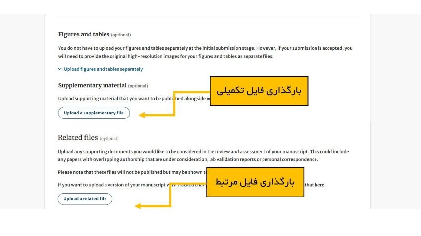 ج) Related files (فایلهای مرتبط): در این بخش نویسنده میتواند فایلهایی را بارگذاری کند که برای داوری مفید هستند اما منتشر نمیشوند. مانند: