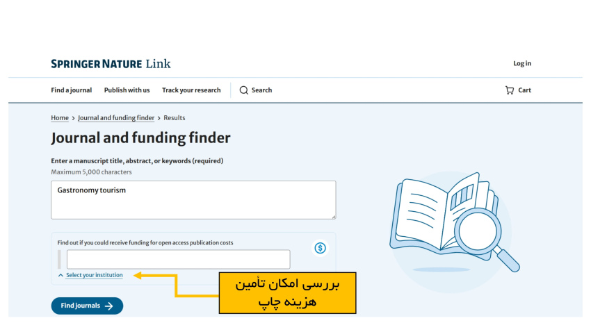 - Explore open access funding : برای بررسی اینکه آیا دانشگاه یا کشور نویسنده هزینه چاپ مقاله را پوشش میدهد یا خیر.