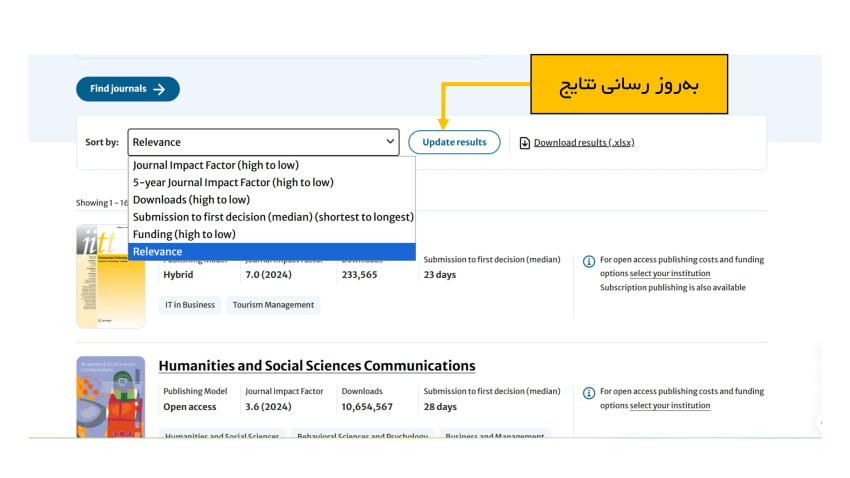 - Downloads → ژورنالهای پربازدید را در صدر نتایج قرار میدهد.