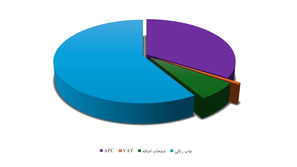 این نمودار دایرهای سهم تقریبی هر نوع هزینه در فرآیند انتشار مقاله در انتشارات Springer Nature را نشان میدهد؛ بیشترین سهم مربوط به هزینه دسترسی آزاد (APC) است و بخشهای کوچکتر به چاپ رنگی، صفحات اضافه و مالیات اختصاص دارند.