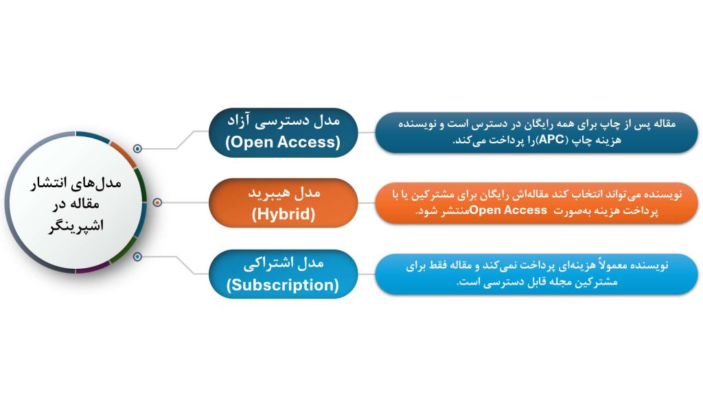اشپرینگر سه مدل اصلی برای چاپ مقاله دارد. شناخت این مدلها کمک میکند بدانید در چه شرایطی باید هزینه پرداخت کنید و کجا میتوانید بدون هزینه مقاله خود را منتشر نمایید.