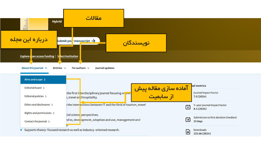 - Aims and Scope: اهداف و حوزه علمی ژورنال را توضیح میدهد.