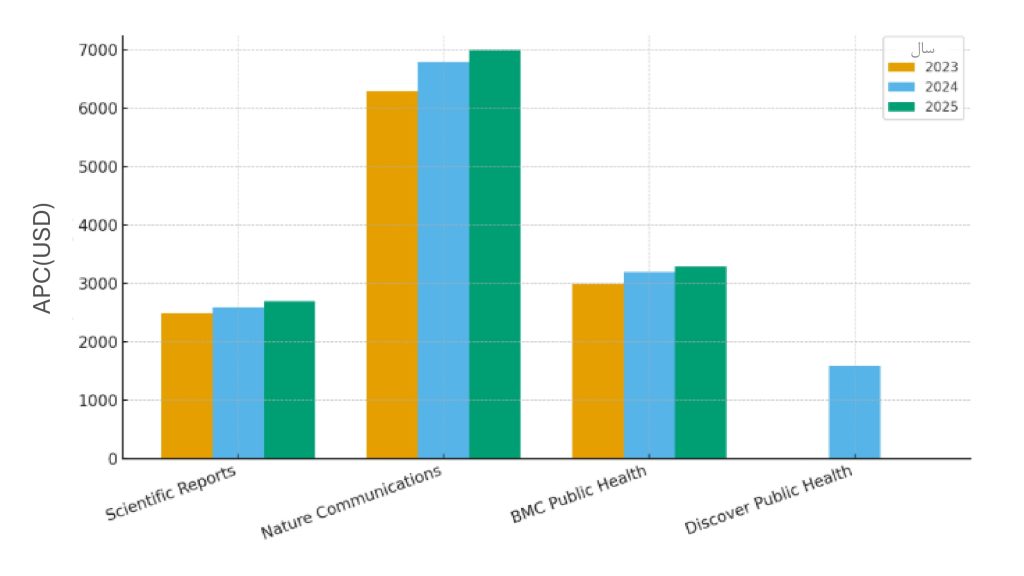 برای درک بهتر این تغییرات، جدول زیر مقایسهٔ تقریبی هزینه چاپ (APC) مجلات را در بازهٔ 2023تا 2025را نشان میدهد. اعداد به دلار آمریکا، پیش از اعمال مالیات (VAT) و هرگونه تخفیف یا معافیت کشوری (Waiver) هستند.