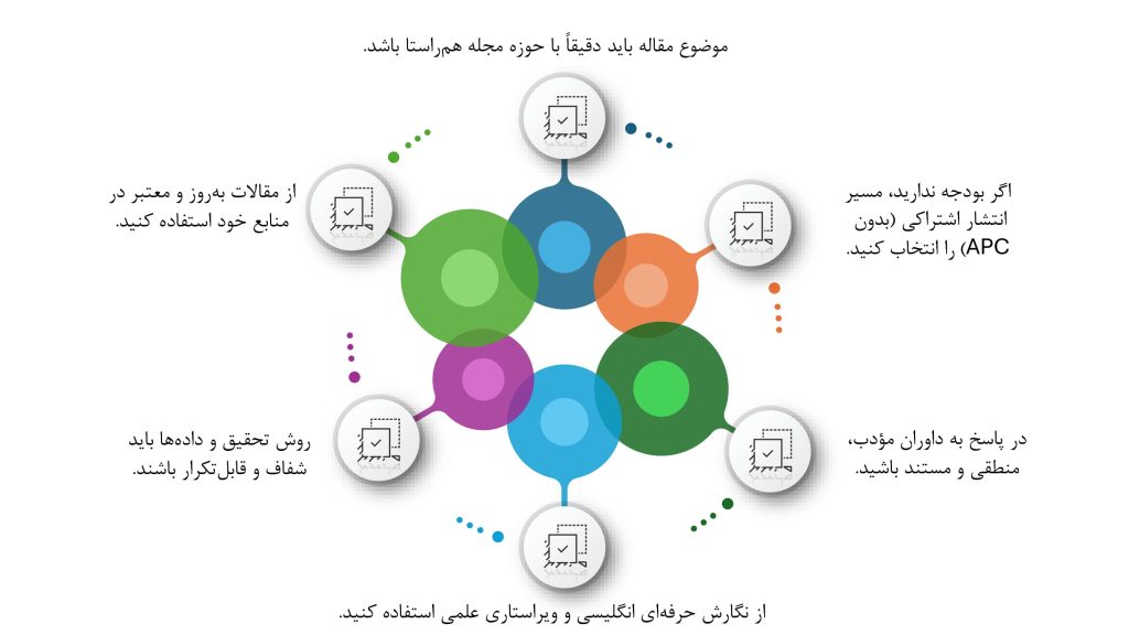 تناسب موضوع مقاله با حوزه مجله، نوآوری در پژوهش، شفافیت روشها و پاسخ دقیق و محترمانه به نظرات داوران از مهمترین عوامل موفقیت در پذیرش هستند.