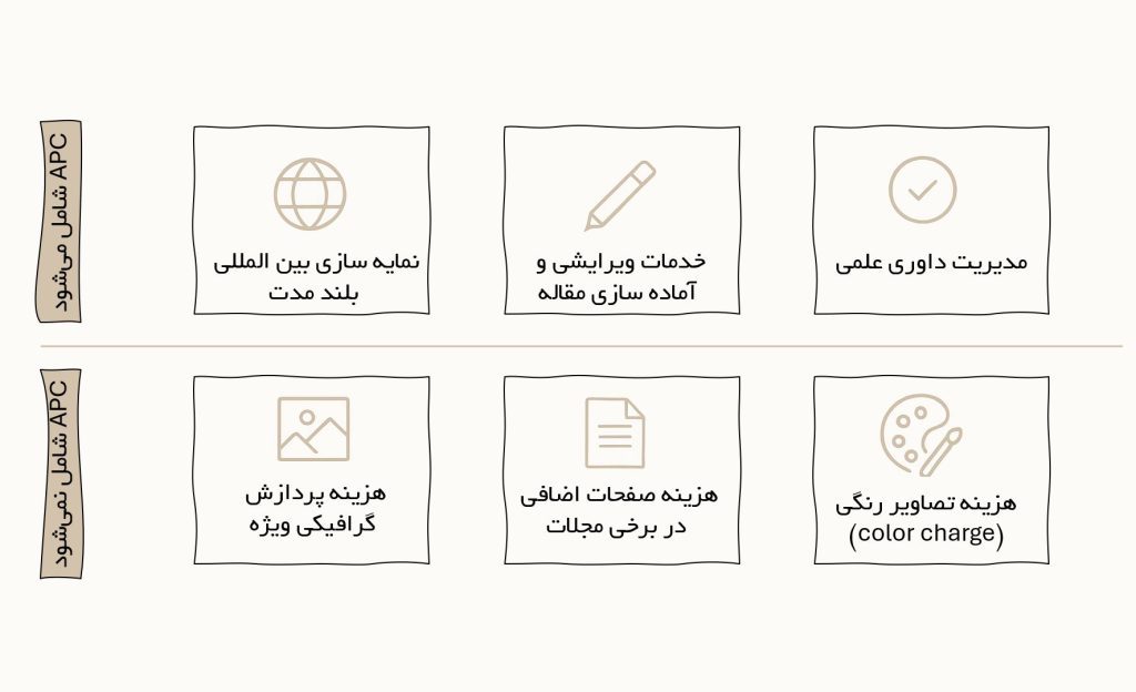 نکته: تصمیم برای پرداخت APC بعد از پذیرش مقاله گرفته میشود و هیچ تأثیری در فرآیند داوری ندارد.