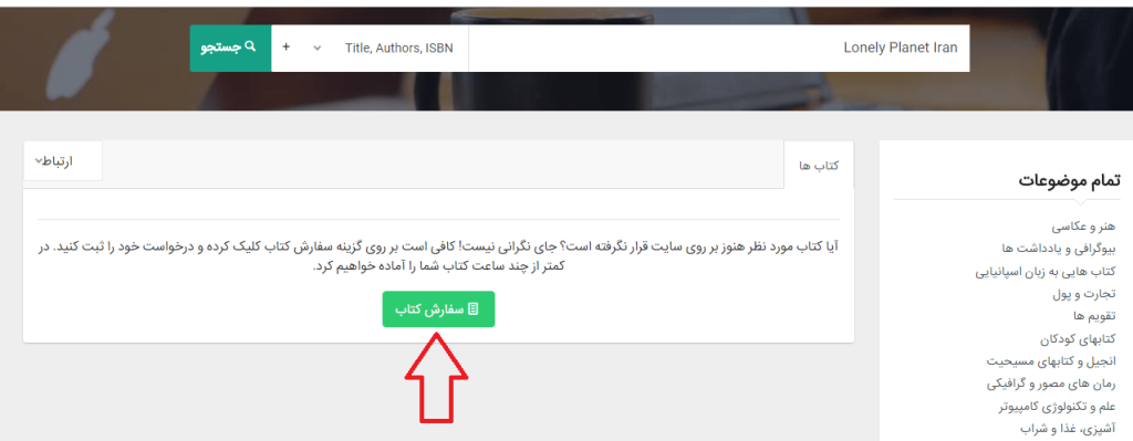 علاوه بر این، این امکان در سایت ایبوک رالی قرار داده شده که اگر کتاب مد نظر خود را با جستجو در سایت ایبوک رالی پیدا نکردید، با کلیک بر روی گزینه سفارش کتاب، کتاب درخواستی خود را سفارش دهید. سالور های با تجربه این سایت، کتاب مد نظر شما را پیدا کرده و در اختیارتان قرار می دهند!